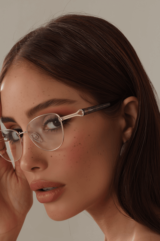 Suit frames with soft, rounded lines, avoid overly angular styles. Semi-rimless or rimless frames can accentuate the delicate features