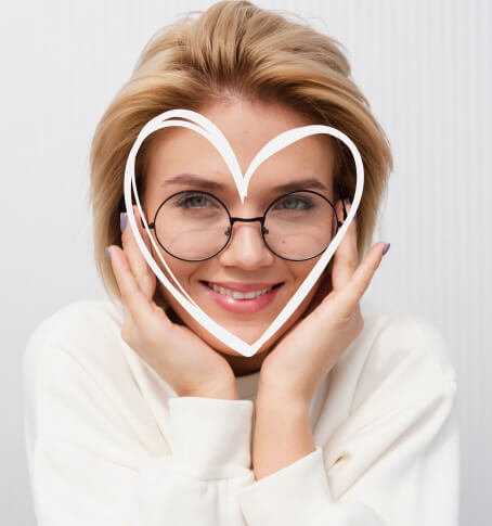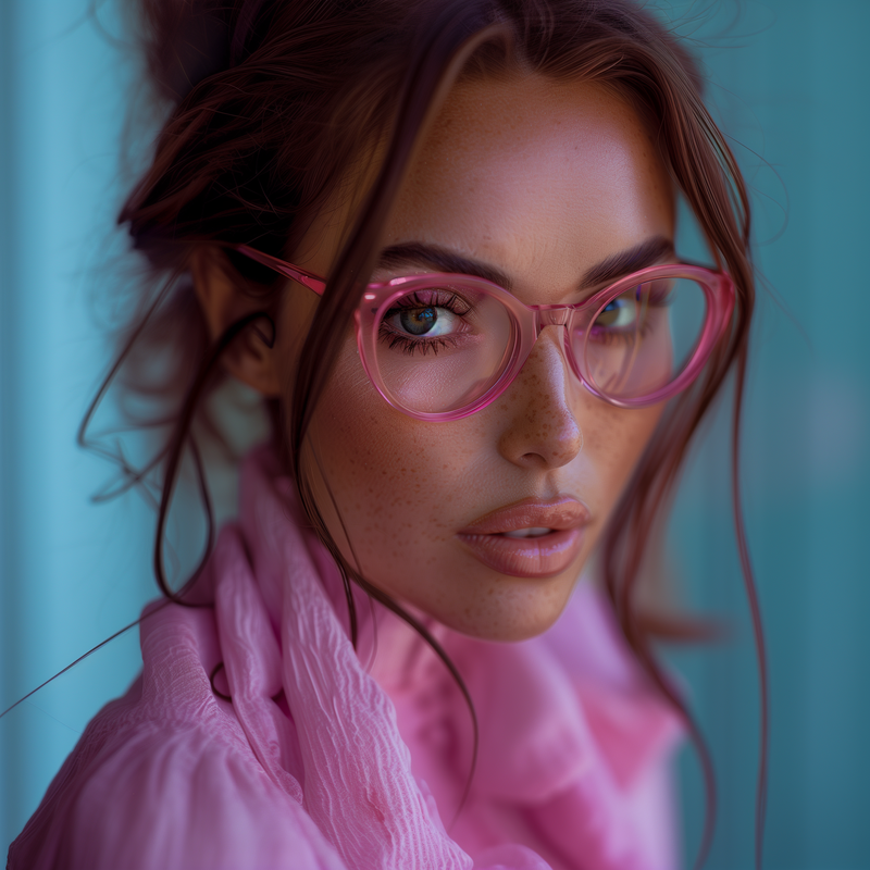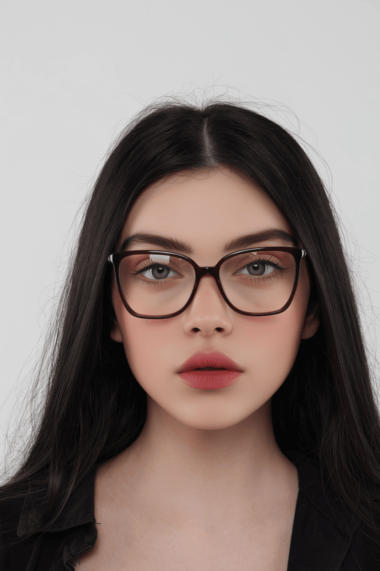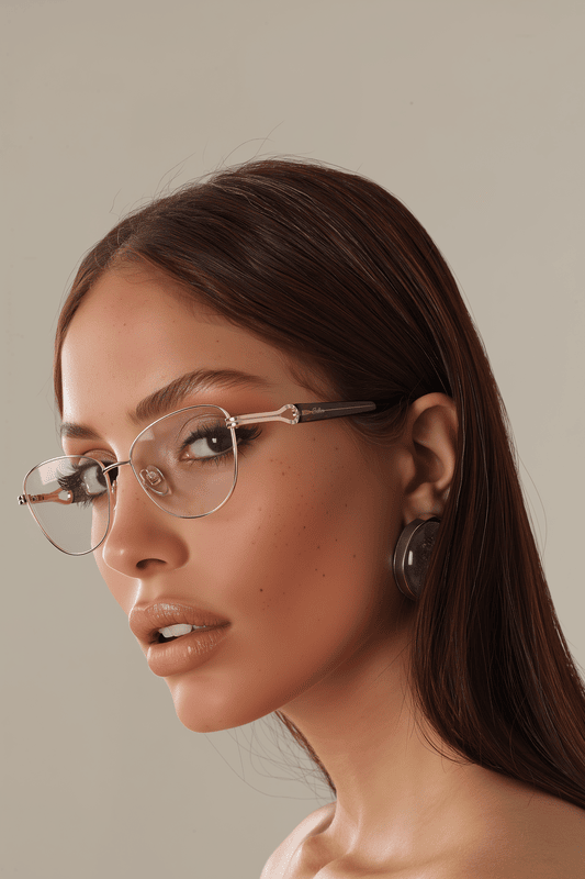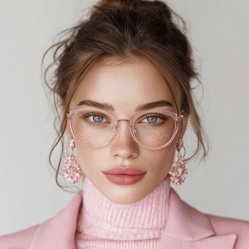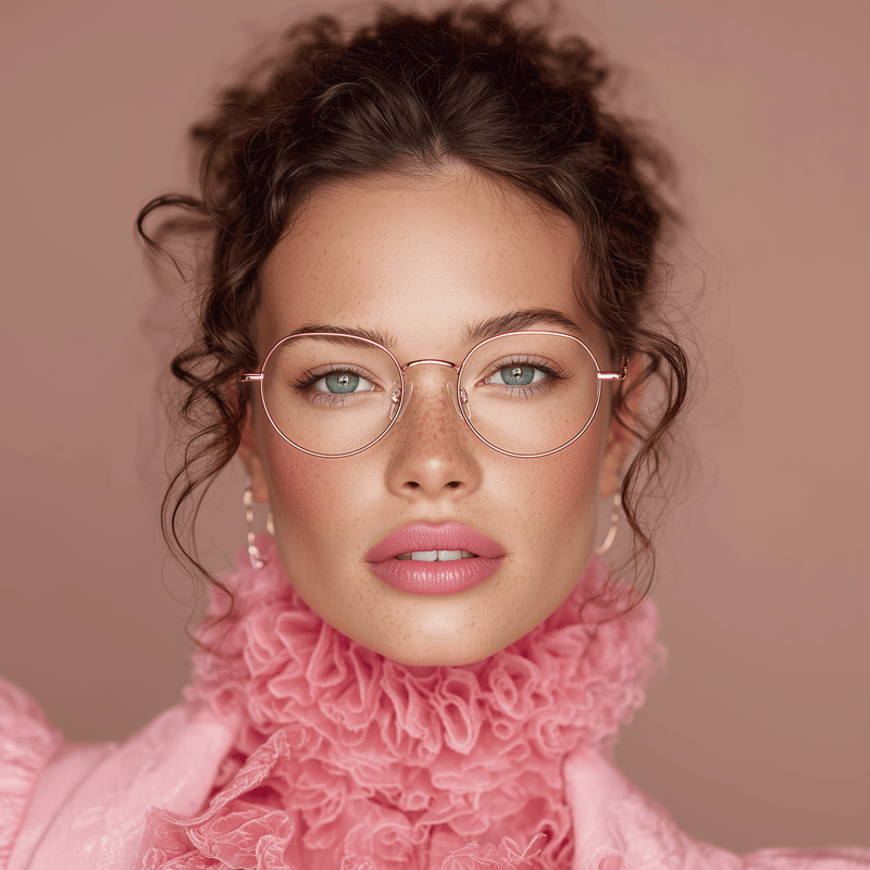 Suit frames with soft, rounded lines, avoid overly angular styles. Semi-rimless or rimless frames can accentuate the delicate features